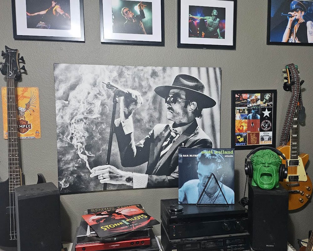 My home office is a small temple to Scott Weiland. Posters from old tours hang on the walls. Vinyl sleeves lean against the speakers. A framed photo from that last concert sits beside my desk. Every day I play his music while I work. Sometimes it is Interstate Love Song, sometimes Big Empty, sometimes the haunted genius of 12 Bar Blues. His voice fills the room like an old friend who understands more than he should. People talk about losing artists, but for fans like me, it never feels like they left. Scott’s songs are the wallpaper of my life. They score the mornings, the late nights, the quiet moments when memory sneaks in. He was chaos and grace in the same body. That contradiction made him real.